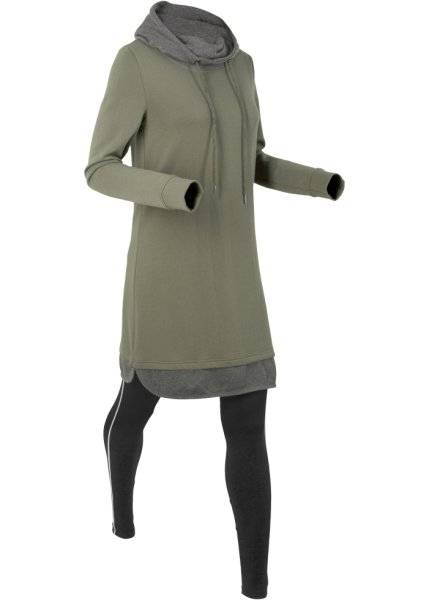 Трикотажное платье + легинсы (2 изд.) (оливковый) bonprix для женщин