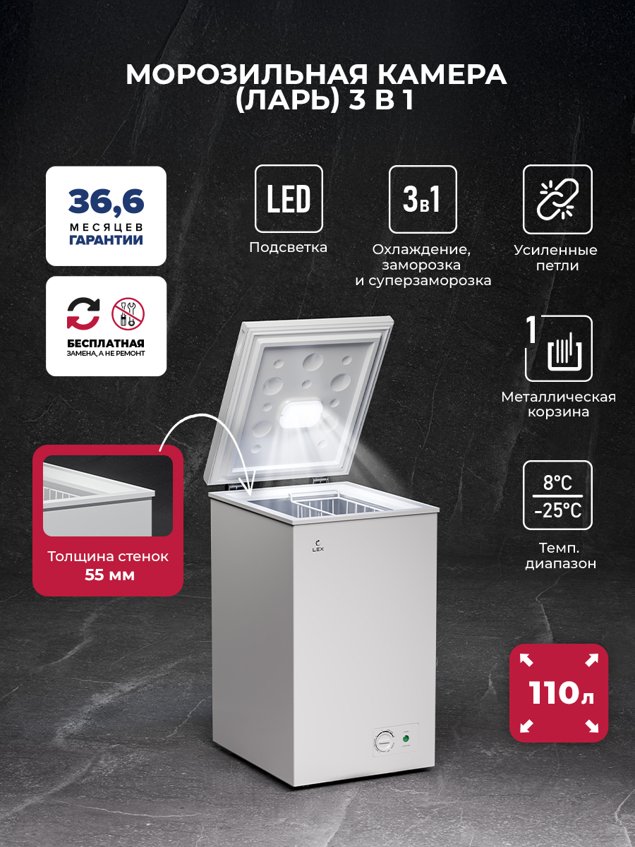 Холодильно-морозильная камера отдельностоящая LEX LFR110 FFLed