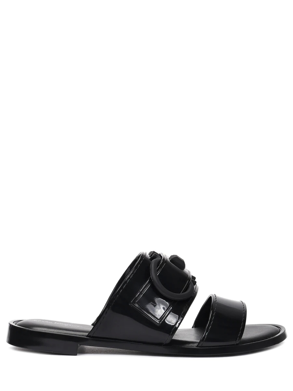 -Черные резиновые шлепанцы от SALVATORE FERRAGAMO.