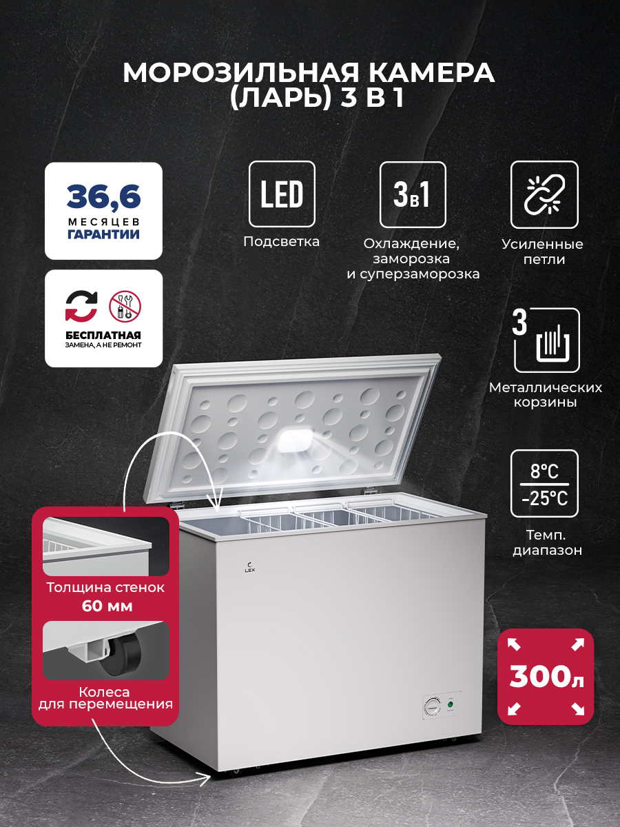 Холодильно-морозильный ларь отдельностоящий LEX LFR300 FFLed