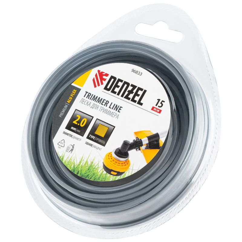 Леска для триммера армированная алюминием квадратная Denzel , 2,0мм х 15м, блистер ALUFLEX 96833