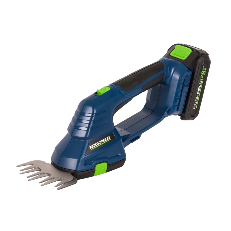 **Ножницы аккумуляторные Rockfield RF2578** — это универсальный инструмент для ухода за садом и газоном, работающий от литий-ионного аккумулятора напряжением 20В. Предназначен для стрижки газонов, обрезки кустарников, формирования живых изгородей, ухода за садовыми растениями. В конструкции предусмотрены: двухкомпонентное стальное полотно, пластиковая эргономичная ручка длиной 17 см. В комплекте идут: защитный чехол для лезвий, зарядное устройство, два сменных лезвия, аккумулятор 2,0 А*ч.