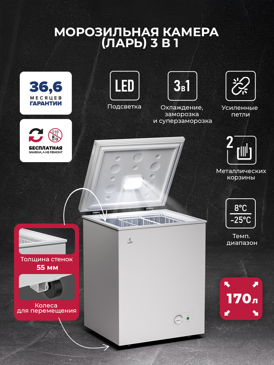 Холодильно-морозильный ларь отдельностоящий LEX LFR170 FFLed