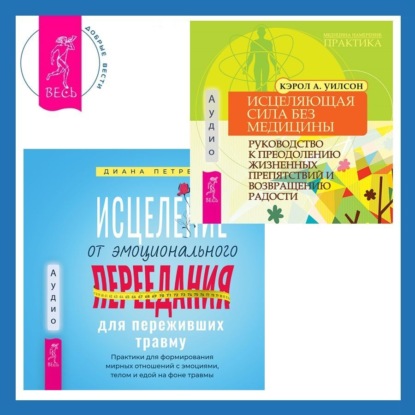Сборник аудиокниг: Исцеление от эмоционального переедания для переживших травму; Исцеляющая сила без медицины. Руководство к преодолению жизненных препятствий и возвращению радости Признайтесь, вы чувствуете зависимость от докторов, лекарств по рецепту, пунктов первой помощи и госпитализаций? Наверняка, да. Но автор этой книги уверена, что любой человек может прожить без микстур и больниц. Кэрол Уилсон, доктор медицины и практикующий врач, попробовала объединить в своей работе некоторые восточные и западные методы целительства – и результаты превзошли ее ожидания! Тысячи пациентов получили «спонтанное» исцеление, опровергая утверждения врачей, что такое возможно лишь в 1% случаев! В этой книге определены восемь препятствий на пути к исцелению и представлен разработанный автором план действий, базирующийся на пяти древних методиках целительства: осознание, медитация, рейки, ароматерапия с лечебными эфирными маслами и исцеление звуком. Автор уверена: если применять эти техники регулярно, то можно избежать любой болезни.