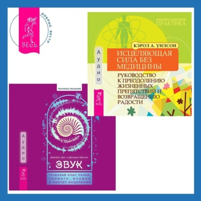 Сборник аудиокниг: Звук: глубокий опыт пения, тонинга, музыки и частот исцеления; Исцеляющая сила без медицины. Руководство к преодолению жизненных препятствий и возвращению радости Признайтесь, вы чувствуете зависимость от докторов, лекарств по рецепту, пунктов первой помощи и госпитализаций? Наверняка, да. Но автор этой книги уверена, что любой человек может прожить без микстур и больниц. Кэрол Уилсон, доктор медицины и практикующий врач, попробовала объединить в своей работе некоторые восточные и западные методы целительства – и результаты превзошли ее ожидания! Тысячи пациентов получили «спонтанное» исцеление, опровергая утверждения врачей, что такое возможно лишь в 1% случаев! В этой книге определены восемь препятствий на пути к исцелению и представлен разработанный автором план действий, базирующийся на пяти древних методиках целительства: осознание, медитация, рейки, ароматерапия с лечебными эфирными маслами и исцеление звуком. Автор уверена: если применять эти техники регулярно, то можно избежать любой болезни.