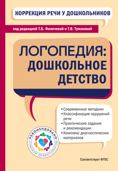 «Коррекция речи у дошкольников. Логопедия: дошкольное детство» – уникальное пособие для формирования грамотной речи, написанное коллективом профессоров и докторов педагогических и психологических наук. Эта книга необходима всем, кто профессионально работает с детьми, – логопедам, дефектологам, воспитателям, студентам педагогических колледжей и вузов, а также рекомендована родителям. Теоретические аспекты дополняются практическими заданиями и советами. Комплекс диагностических материалов помогает своевременно выявить и преодолеть нарушения речи у дошкольников. Особое внимание уделяется организации работы с детьми с ограниченными возможностями здоровья (ОВЗ). Книга рекомендована Союзом дефектологов России! Пособие написано под редакцией Т. Б. Филичевой и Т. В. Тумановой. Филичева Татьяна Борисовна – доктор педагогических наук, профессор кафедры логопедии Института детства Московского педагогического государственного университета, Президент Союза дефектологов. Автор более 200 научных и учебно-методических трудов, среди которых учебники «Логопедия», «Логопедия. Теория и практика», «Основы дошкольной логопедии», многочисленные научные статьи и методические пособия по развитию речи и подготовке к школе детей с особенностями речевого развития. Туманова Татьяна Володаровна – доктор педагогических наук, профессор кафедры логопедии Института детства Московского педагогического государственного университета, член Комитета детского языка Международной ассоциации логопедов и фониатров. Автор более 150 научных и учебно-методических трудов, среди которых учебники «Логопедия», «Логопедия. Теория и практика», «Основы дошкольной логопедии», многочисленные научные статьи и методические пособия по развитию речи у детей с особенностями речевого развития и применению инновационных технологий в работе с ними.