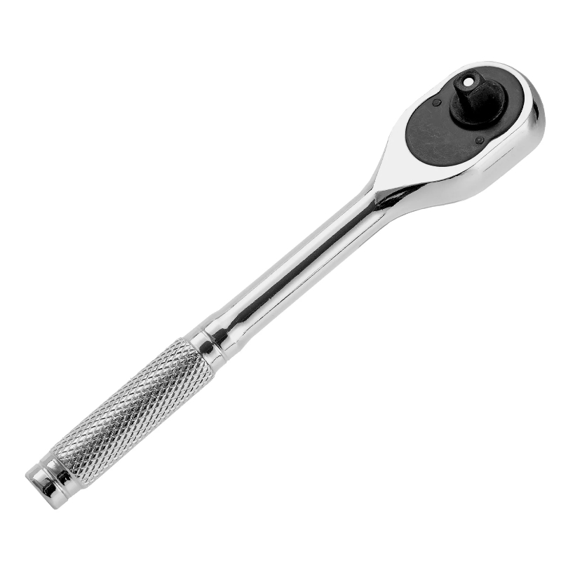Цельнометаллический хромированный ключ-трещотка Сибртех из стали CrV, с посадочным размером 1/4″ и 45-зубым храповым механизмом, с функцией быстрого сброса, используется для монтажа и демонтажа резьбовых соединений. Предназначен для установки торцевых головок, адаптеров и удлинителей. Цельнометаллическая конструкция отличается повышенной прочностью, что позволяет работать со значительным усилием. Инструмент пригодится дома, в гараже и в поездкеПреимущества Прочность — ключ изготовлен из закаленной хромованадиевой стали и выдерживает высокие нагрузки Долговечность — хромированная поверхность устойчива к образованию коррозии Функция реверса — при помощи переключателя с металлическим флажком можно одним движением изменить направление вращения трещотки Надежная фиксация — шариковый замок крепко удерживает торцевую головку, поэтому она не соскочит во время работы Быстрый сброс — достаточно нажать на кнопку, чтобы освободить головку от насадки, это особенно удобно для работы с крепежом разного размера