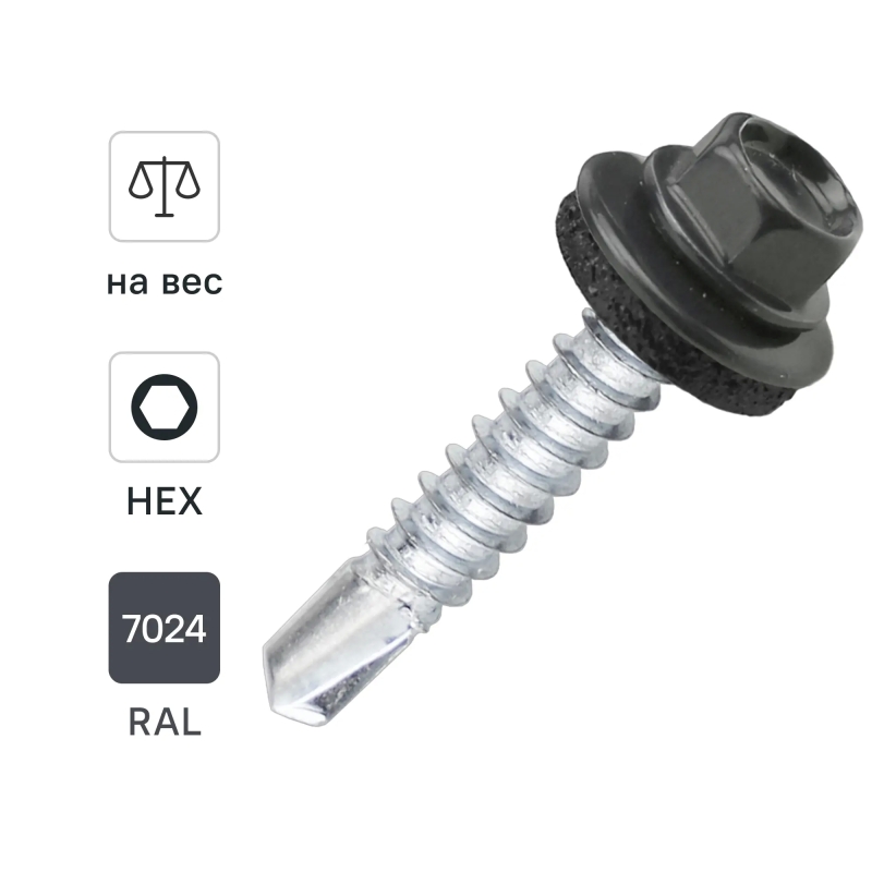 Саморезы по металлу Dilwis оцинкованные с буром 5.5x32 мм на вес RAL 7024