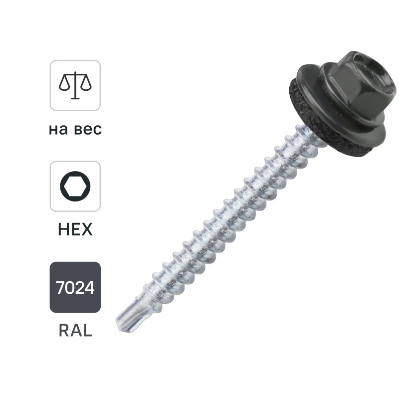 Саморезы кровельные по дереву Dilwis оцинкованные с буром 4.8x51 мм на вес RAL 7024
