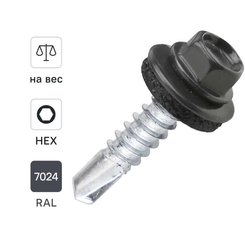 Саморезы по металлу Dilwis оцинкованные с буром 5.5x25 мм на вес RAL 7024