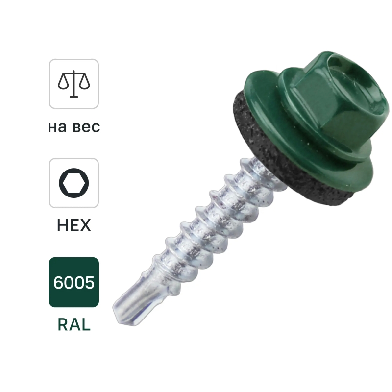 Саморезы кровельные по дереву Dilwis оцинкованные с буром 4.8x29 мм на вес RAL 6005