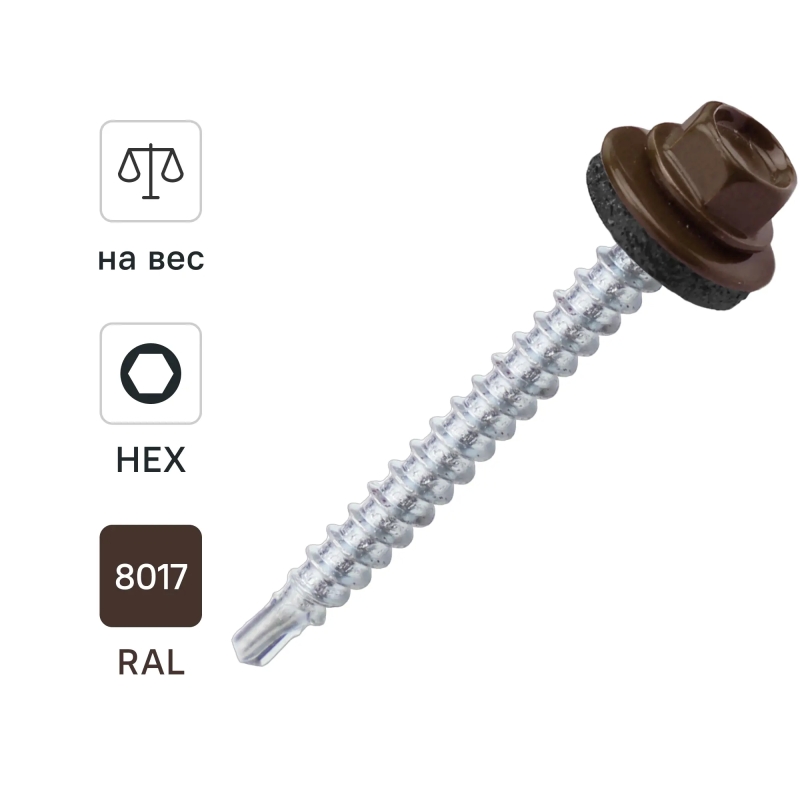 Саморезы кровельные по дереву Dilwis оцинкованные с буром 4.8x51 мм на вес RAL 8017