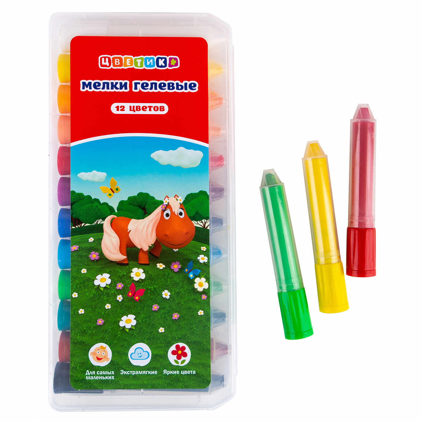 Набор мелков гелевых Цветик 12 цветов, пластиковая упаковка