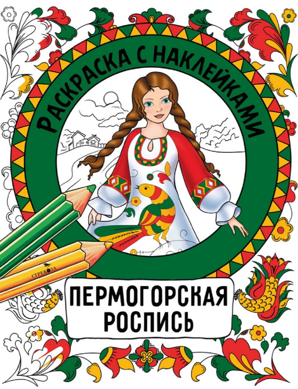 Пермогорская роспись. Раскраска с наклейками; Стрекоза, 2025