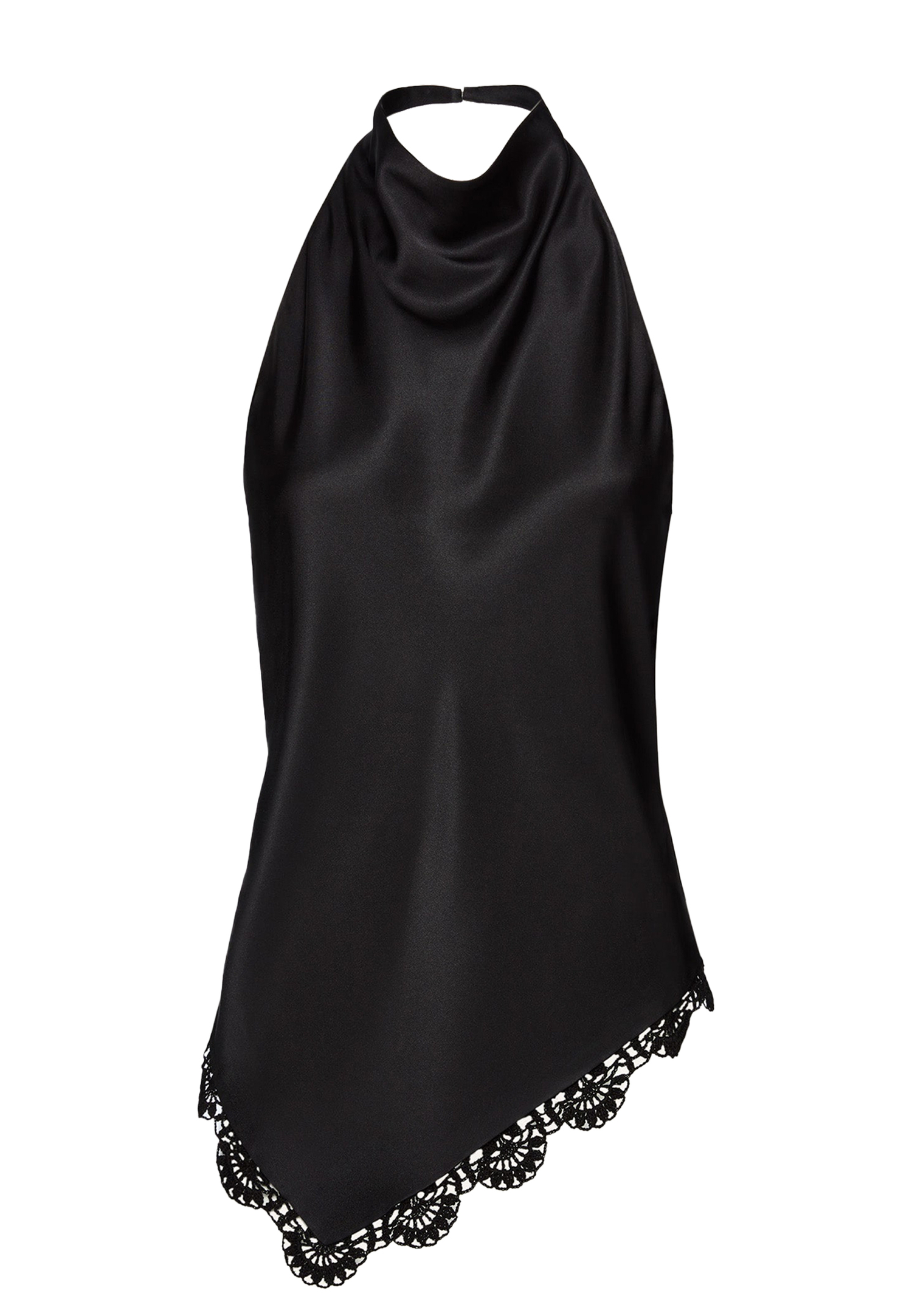 Покорите мир своей безупречной элегантностью с блузой в бельевом стиле от Magda Butrym, которая соединяет в себе тайные чары и шик современной моды. Изготовленная из роскошного шелкового атласа, эта черная модель завораживает своей гладкой текстурой и потрясающим блеском, создавая безукоризненную ауру роскоши. Высокий ворот и свободный крой помогают создать образ расслабленной изысканности, а вырез халтер без рукавов добавляет нотку современного гламура и играет с линиями вашего силуэта. Открытая спина и асимметричный подол создают воздушность и динамичность, придавая образу энергию и движение. Кружевная кайма, выполненная вручную, добавляет элемент ретро-шика и демонстрирует искусство мастерства, подчеркивая все элементы красоты и изысканности этого произведения искусства, созданного в Польше. Эта блуза — яркий пример того, как мода превращается в искусство, позволяя вам выделиться в любой обстановке, создавая эффект непревзойденного гламура и утонченного эпатажа.