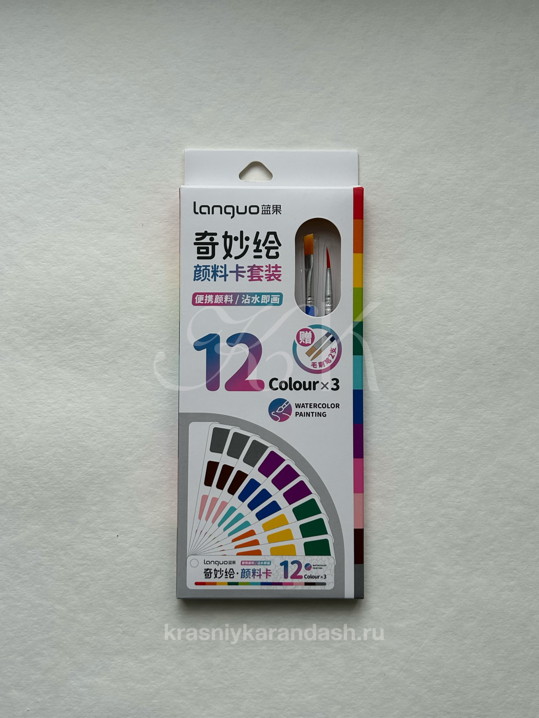 Набор акварели Languo 12 цв + 2 кисти