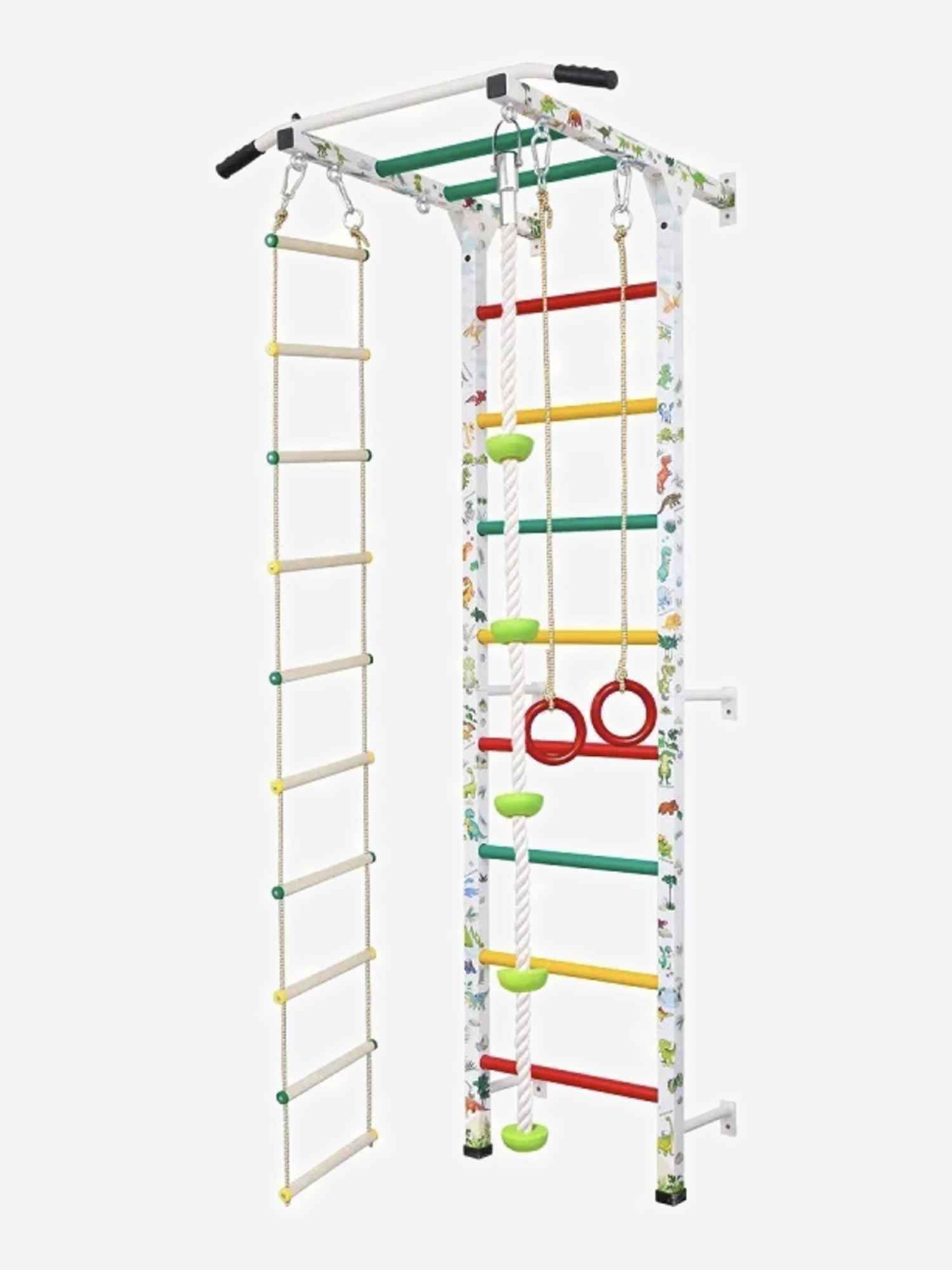 Шведская стенка WestSport "Динозавры" с турником, веревочной лестницей, кольцами, канатом с упорами, тарзанкой, Белый детям (размер: Без размера)