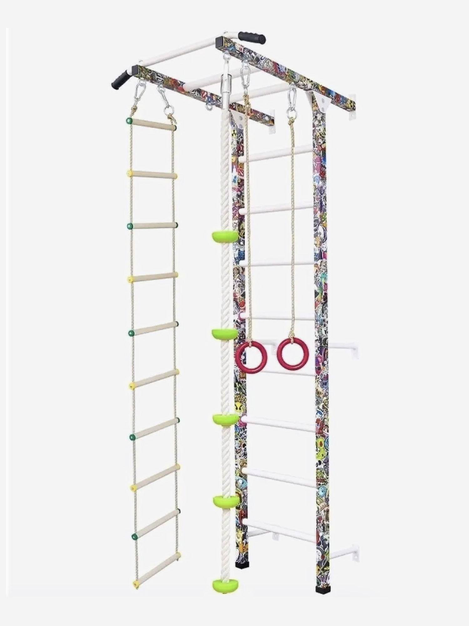 Шведская стенка WestSport "Stickerbombing" с турником, веревочной лестницей, кольцами, канатом с упорами, тарзанкой, Голубой детям (размер: Без размера)