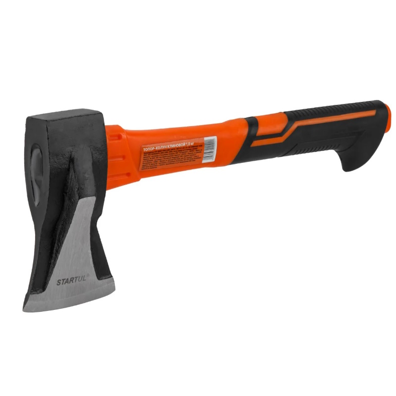 Топор-колун Startul , 1,0кг, клиновой, с фиберглассовой рукояткой подходит для бытового использования. Преимущества Лезвия заточены и закалены Методом ТВЧ Жесткое закрепление головы исключает ее вылет или иные повреждения Фиберглассовая рукоятка отлично поглощает колебания, возникающие при работе, не передавая их на руку, обладает высокой механической прочностью, устойчиво к воздействию агрессивной среды Покрытие из термопластичной резины TPR мягкое наощупь и не дает рукоятке скользить в ладони Работать безопасно, т.к. расширенный нижний край рукоятки не позволяет инструменту выскальзывать из рук
