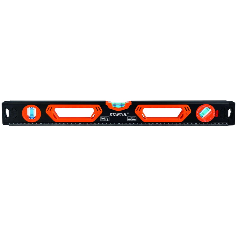 Уровень Startul применяется для контроля горизонтальности и вертикальности поверхностей.Преимущества Длина 2000 мм предоставляет уникальные возможности для проведения измерений на гигантских площадях без необходимости частой перестановки инструмента. Это незаменимое преимущество при работе с масштабными промышленными объектами Уровень оснащён высокоточными измерительными колбами профессионального уровня, обеспечивающими максимально надёжные показания даже в самых сложных условиях работы Корпус изготовлен из особо прочного алюминиевого профиля с усиленной конструкцией, способной выдерживать экстремальные механические нагрузки