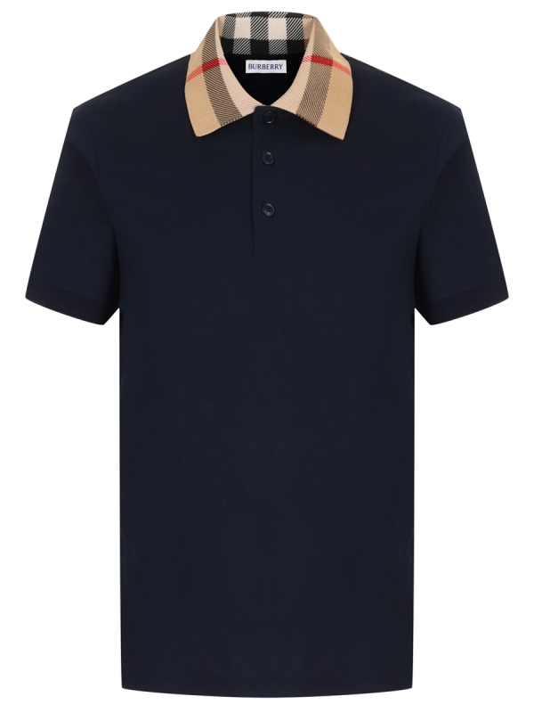 -Темно-синее поло из хлопка-пике от BURBERRY.