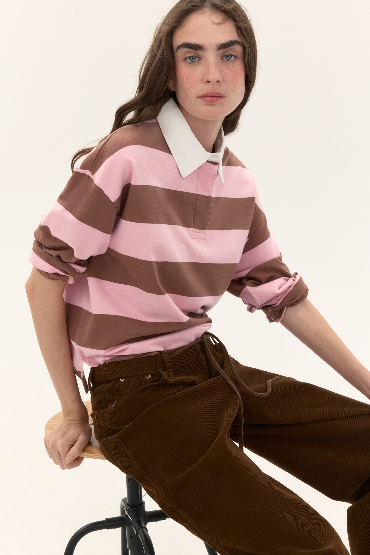 - Двуслойный лонгслив в полоску на любой случай жизни. Хлопковый джемпер станет основой образов в стиле «офисной сирены» на работу или разбавит строгие образы на учебу. Сочетай лонг с высокой посадкой для расслабленных и комфортных аутфитов или с низкой посадкой, чтобы подчеркнуть свою талию. Создавай стильные кэжуал-образы, в которых тебе будет максимально удобно. Двуслойная футболка с длинными рукавами и рубашечным воротником станет основой многослойных луков или трендовых аутфитов в стиле y2k