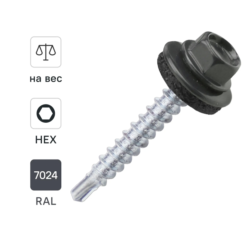 Саморезы кровельные по дереву Dilwis оцинкованные с буром 4.8x35 мм на вес RAL 7024