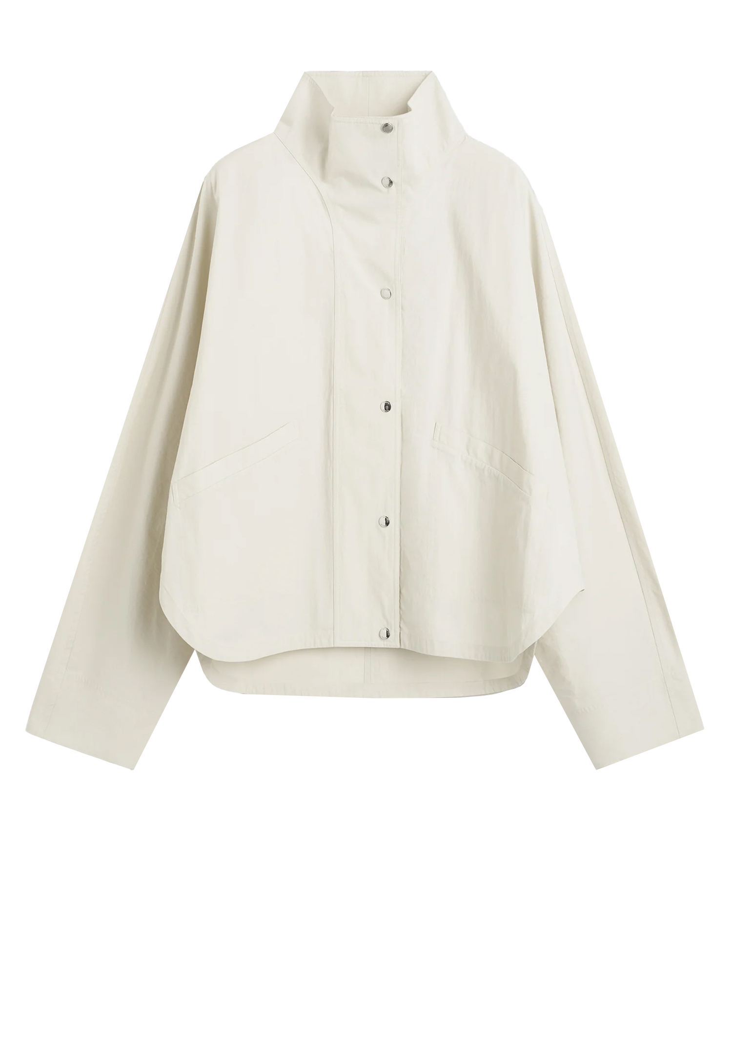 Эта молочная куртка-парашют от Toteme — квинтэссенция скандинавского минимализма и современного изящества. Созданная из легкой, стираемой и водоотталкивающей хлопковой смеси, она станет идеальным спутником в первые дни осени. Её прямой и решительный крой сочетается с утонченностью деталей, таких как широкие карманы «летучая мышь» и косые накладные карманы, добавляя функциональности и стиля. Застежка на кнопках в тон придает аккуратный и завершенный облик, а высокий вырез, который раскрывается при расстегивании, демонстрирует непринужденную элегантность. Эта модель идеально отражает эстетику Toteme, основанную Элин Клинг и Карлом Линдманом, предлагая стиль и комфорт в каждой детали. Пусть молочный оттенок станет светлым акцентом вашего гардероба, сочетая практичность и высокую моду в одном изделии.
