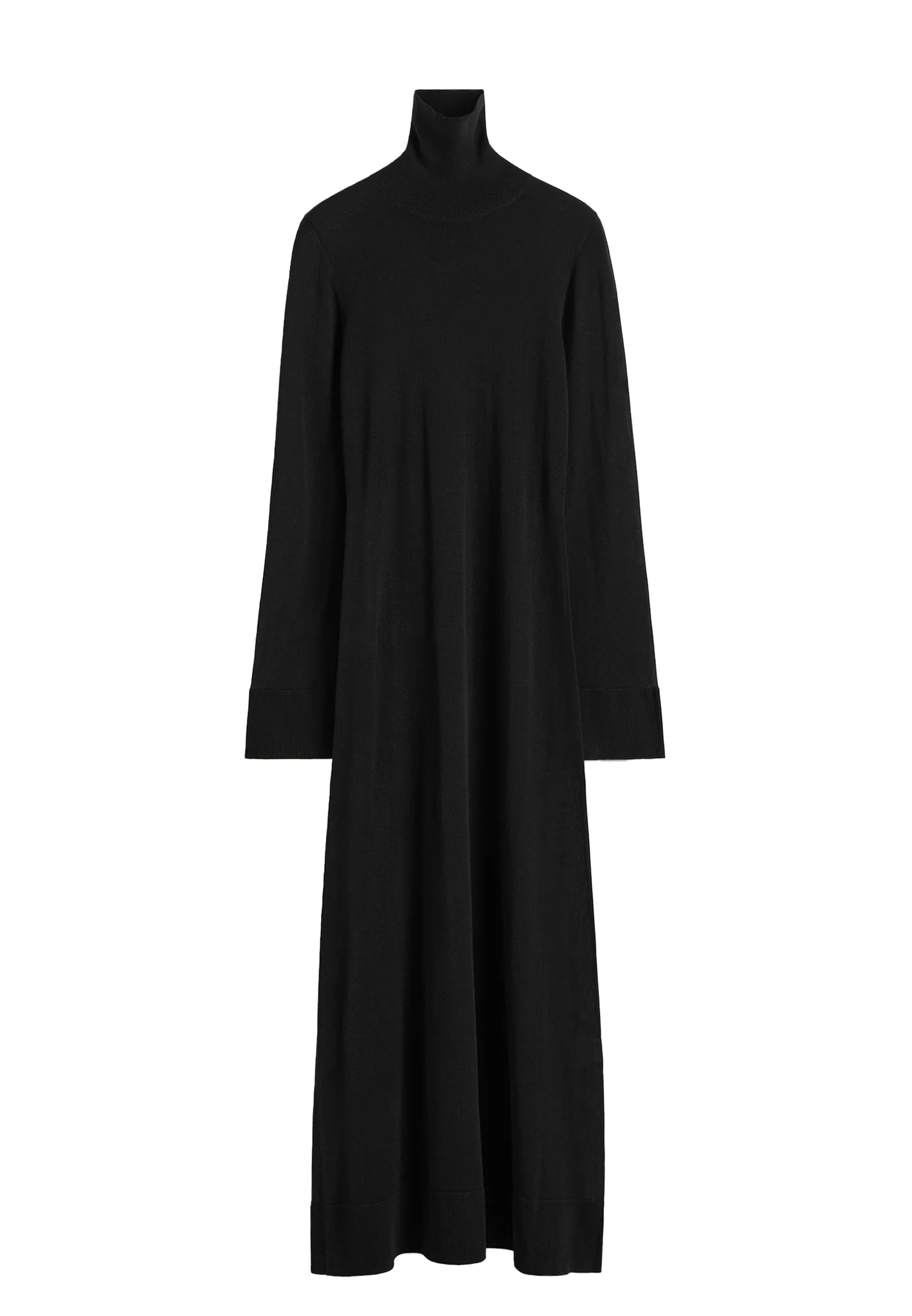 Платье-водолазка длиной в пол становится эффектным акцентом новой коллекции, добавляя драматичности благодаря разрезам на манжетах, которые подчеркивают утонченность и современный подход к деталям. Простота линий и строгий крой делают это изделие универсальным, позволяя ему гармонично вписываться в любой гардероб, а стильные аксессуары, такие как кулон на колье, подчеркнут концепцию богемного стиля, на которую вдохновляются основатели бренда Элин Клинг и Карл Линдман. Каждое изделие Toteme — это олицетворение шведской чувствительности и модных устремлений, идеально подходящее для женщины, которая ценит стиль и комфорт.