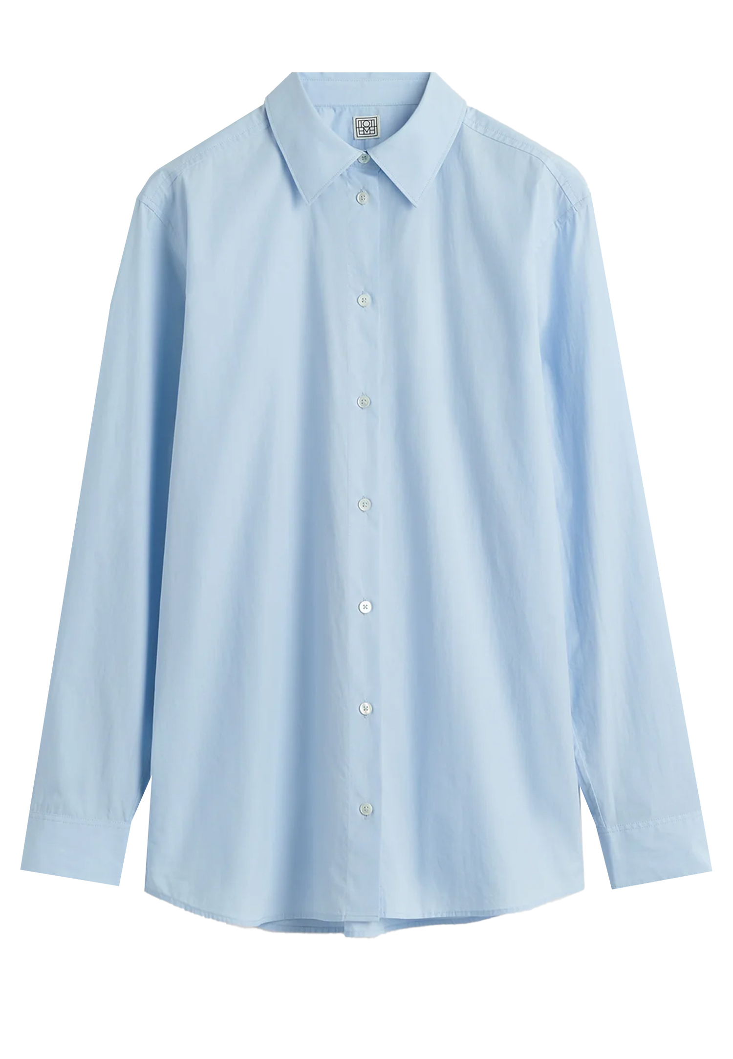 Погрузитесь в мир изящного скандинавского минимализма с голубой хлопковой рубашкой от Toteme, бренда, воплощающего шведскую фэшн-философию в каждой детали. Эта рубашка, созданная из 100% органического хлопка, является символом осознанной моды и эко-устойчивости, позволяя вам соблюдать стиль и заботиться о планете.