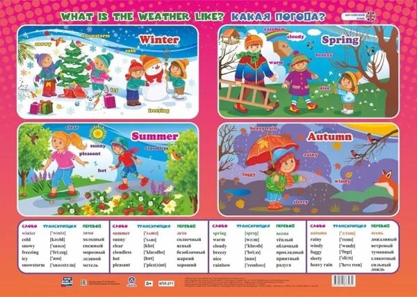 Учебные плакаты. Английский язык. What is the weather? Какая погода? (Формат А2); Учитель, 2025