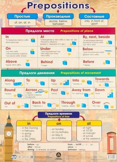 Учебный плакат "Английские предлоги" (Формат А2); Учитель, 2025