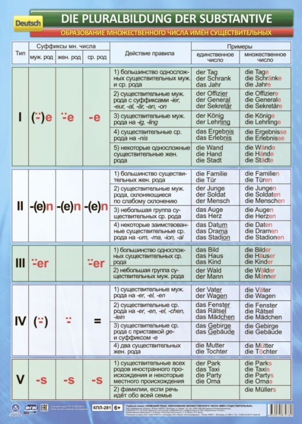 Учебный плакат. Немецкий язык. Образование множественного числа имён существительных. (Формат А2); Учитель, 2025