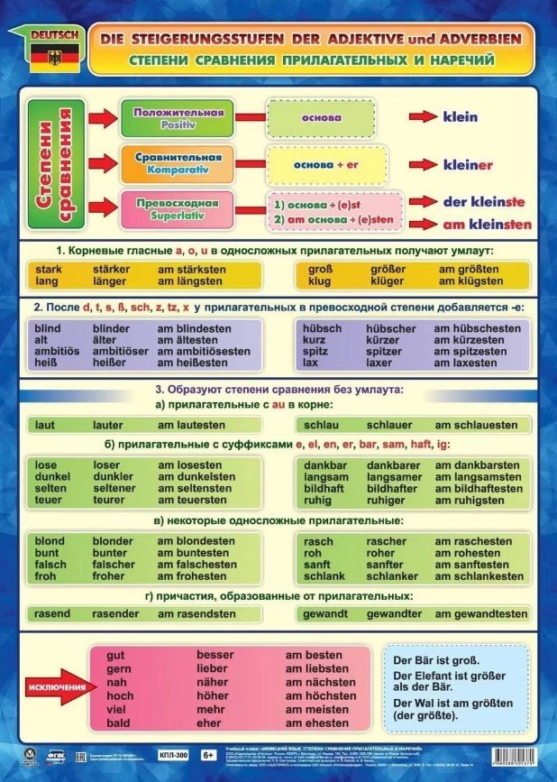 Учебный плакат . Немецкий язык. Степени сравнения прилагательных и наречий. (Формат А2); Учитель, 2025