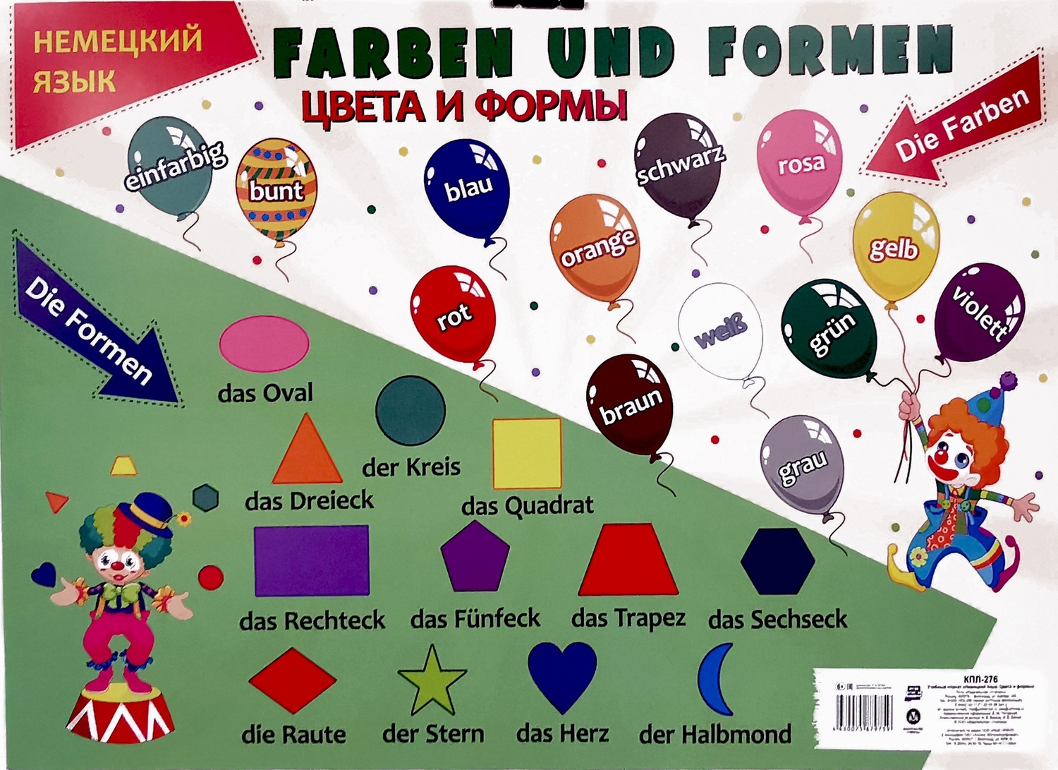 Учебный плакат. Немецкий язык. Цвета и формы. (Формат А2); Учитель, 2025