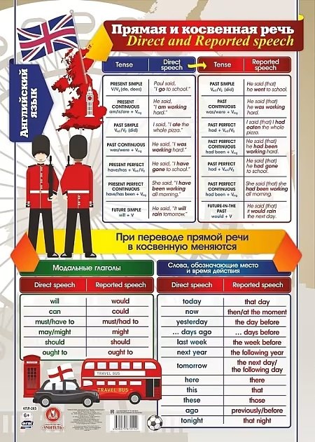 Учебный плакат. Английский язык. Прямая и косвенная речь (Формат А2); Учитель, 2025