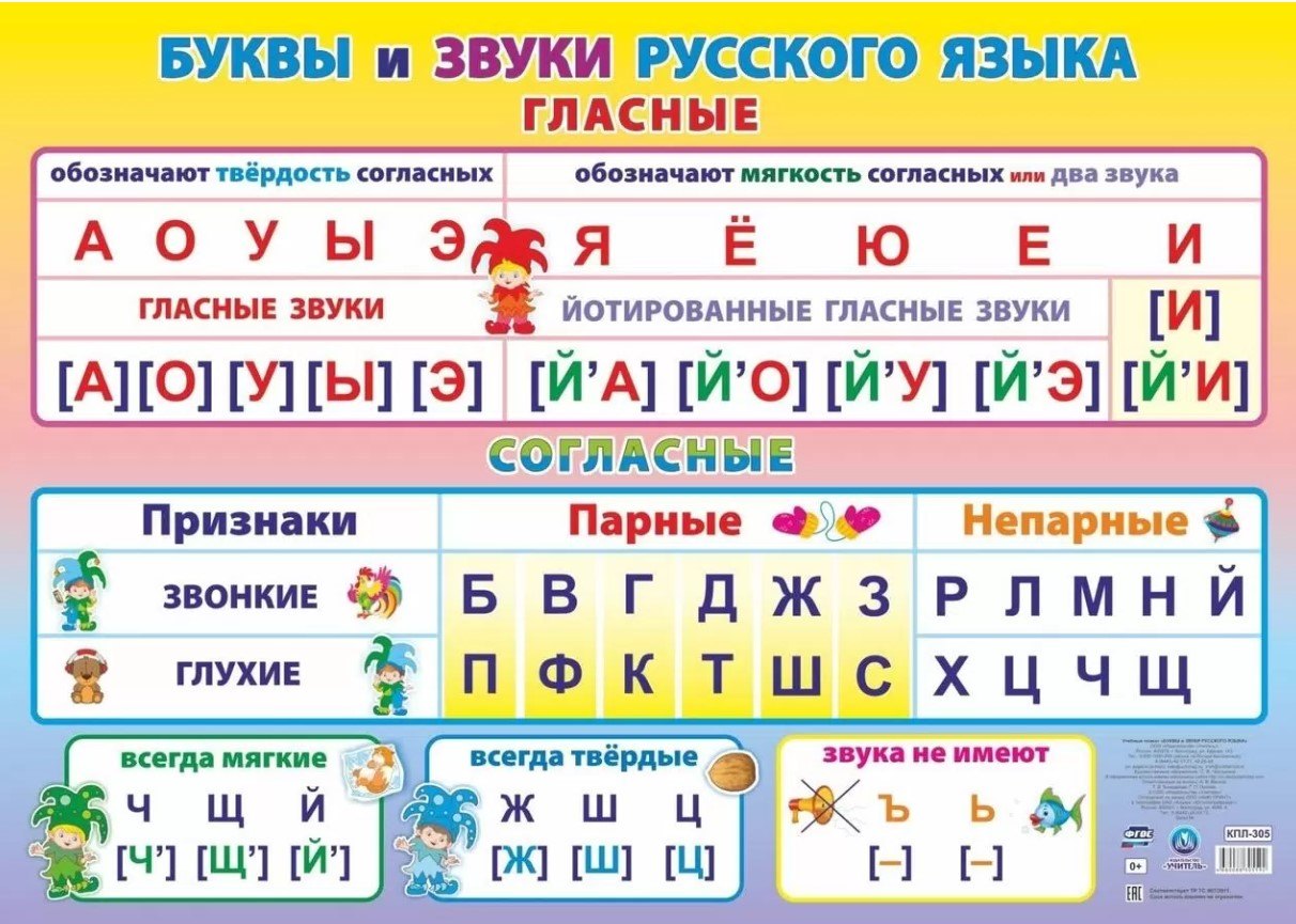 Учебный плакат. Буквы и звуки русского языка. Гласные и согласные. (Формат А2); Учитель, 2025