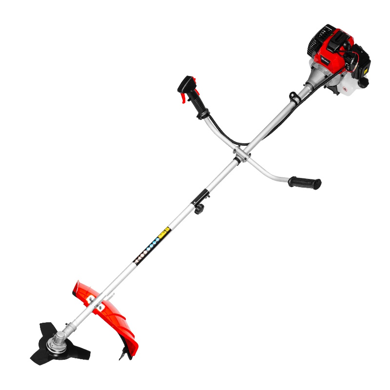 Триммер бензиновый MTX , 52 см3, разъемная штанга, состоит из 2 частей предназначен для стрижки и скашивания травы, формирования границ газонов. Удобен для обработки участков вдоль стен и оград, вокруг деревьев. В качестве режущих элементов используются катушка с леской диаметром 3 мм и трехлопастный нож, благодаря которым триммером можно скашивать даже густую траву и сорняки с толстыми стеблями. Ширина скашивания леской составляет 420 мм, ножом — 255 мм, что позволяет эффективно справляться с работой. Триммер незаменим для ухода за дачным участком.Преимущества Легкий старт — праймер (насос подкачки топлива) облегчает запуск двигателя после долгого простоя Комфортная работа — благодаря плечевому ремню и рукояткам велосипедного типа триммер удобно удерживать и направлять Простая подготовка к работе — в комплект поставки входит дозатор для приготовления топливной смеси Быстрое удлинение корда — достаточно слегка ударить катушкой по земле прямо во время работы, излишки лески будут обрезаны специальным ножом на кожухе Экономичность — полного бака хватает на 1 час непрерывной работы Безопасность — производитель предусмотрел блокировку курка газа для предотвращения случайного запуска, защитный кожух препятствует вылету травы, веток, камней в сторону пользователя Эргономичность — все управляющие клавиши находятся на правой рукоятке Удобное хранение и транспортировка — благодаря разъемной штанге триммер не занимает много места