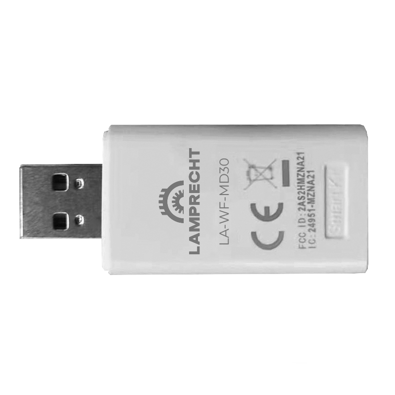 Wi-Fi USB модуль Lamprecht — устройство для беспроводного управления сплит-системами через сеть Wi-Fi с выходом в интернетПреимущества Полностью русифицированное приложение для управления всеми функциями сплит-систем Возможность управления по Wi-Fi как из домашней, так и из мобильной сети Удобное USB-подключение Подходит для сплит-систем ROLAND серий Favorite II, MAESTRO; МОРОЗКО серии БАЙКАЛ, ALFACOOl серии APUS