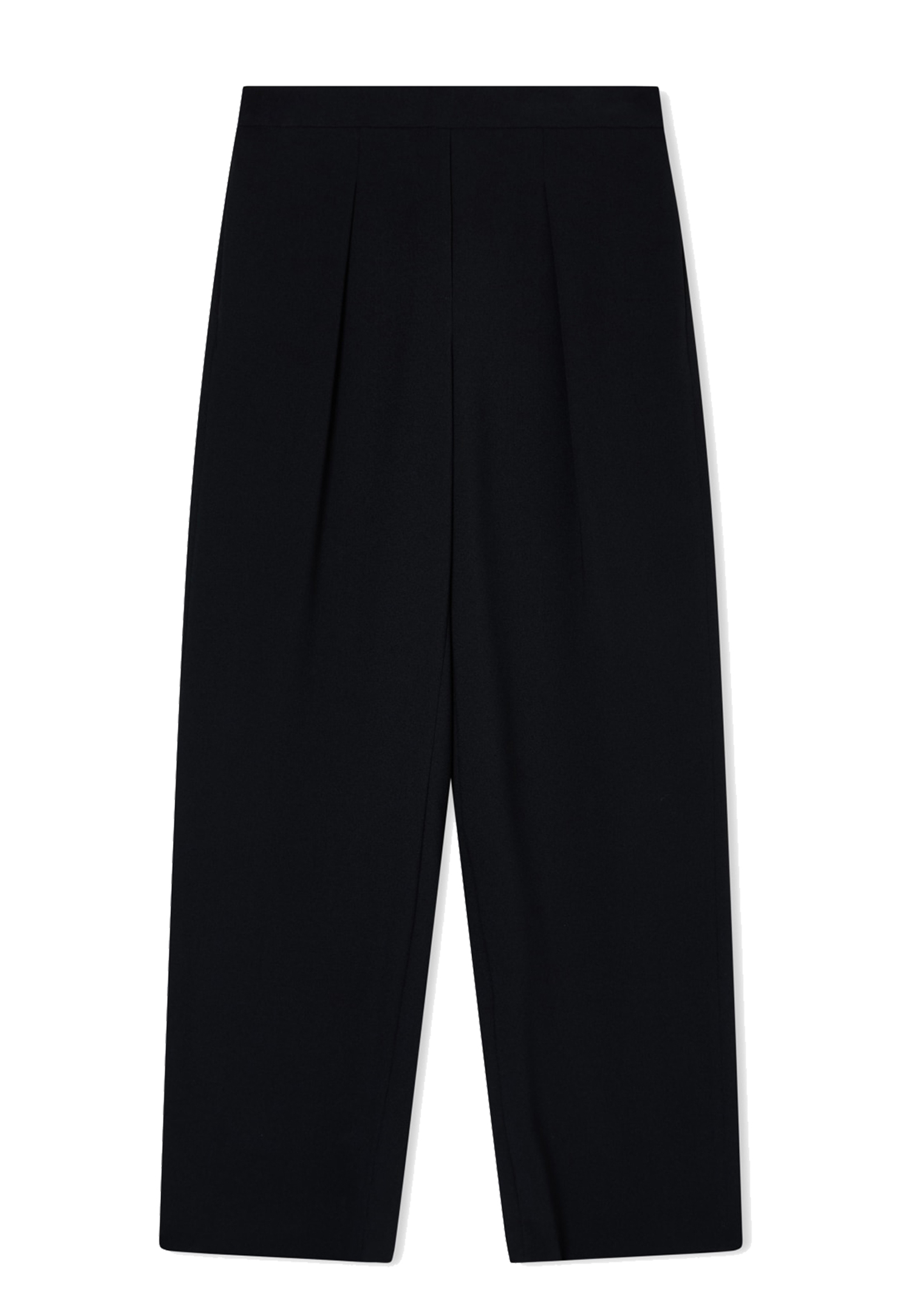 Прямые широкие брюки в классическом черном исполнении — это воплощение стиля и комфорта. Их дизайн идеально подходит для создания как деловых, так и повседневных образов. Свободные брючины, которые слегка присобраны защипами, добавляют изделию динамичности и элегантности, позволяя при этом ощущать свободу движений в течение всего дня. Эластичная талия обеспечивает удобную посадку, которая адаптируется под особенности фигуры. Модель с боковыми шовными карманами выполнена из премиального полиэстера с долей стретча, что делает изделие легким и износостойким. Универсальная модель гармонично комбинируется с различной одеждой и аксессуарами.
