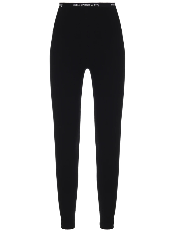 -Черные трикотажные леггинсы купажированного состава на основе эластичной смесовой вискозы от ALEXANDER WANG.