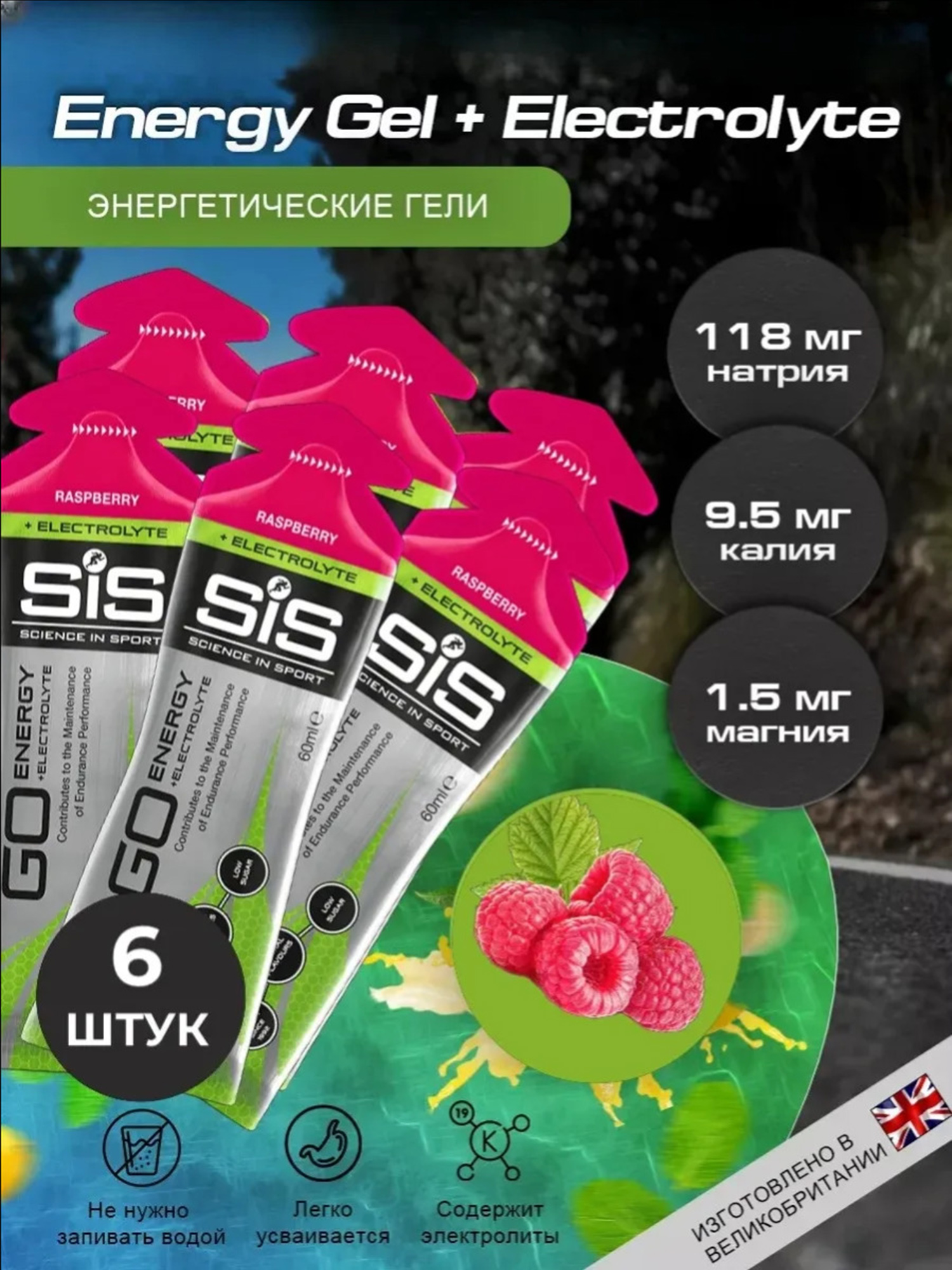 Гель изотонический углеводный с электролитами Sis, вкус Малина, 6 шт, Розовый (размер: Без размера)