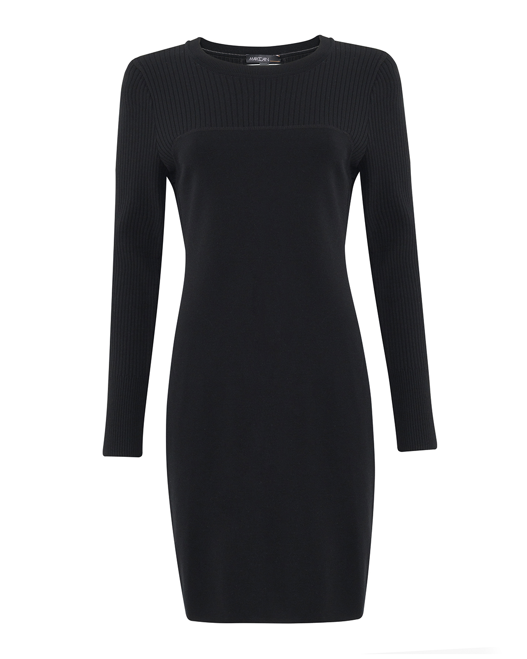 Это платье — квинтэссенция элегантности и минимализма, представленных в изысканной черной палитре. Эластичный трикотаж облегает фигуру, подчёркивая её естественные линии, и создаёт комфортный и стильный образ. Верхняя часть платья украшена рельефной фактурой, придающей глубину и текстурный контраст. Длинные рукава прекрасно компенсируют лаконичность кроя, обеспечивая элегантность и утонченность. Округлый вырез горловины придаёт образу сдержанность и чистоту линий, акцентируя внимание на декольте. Отделка без лишних деталей подчеркивает современный характер платья и делает его идеально подходящим как для деловых мероприятий, так и для вечерних выходов. Это платье станет основой стильного гардероба, оставаясь вне времени и модных трендов, благодаря своему универсальному и безупречному крою.