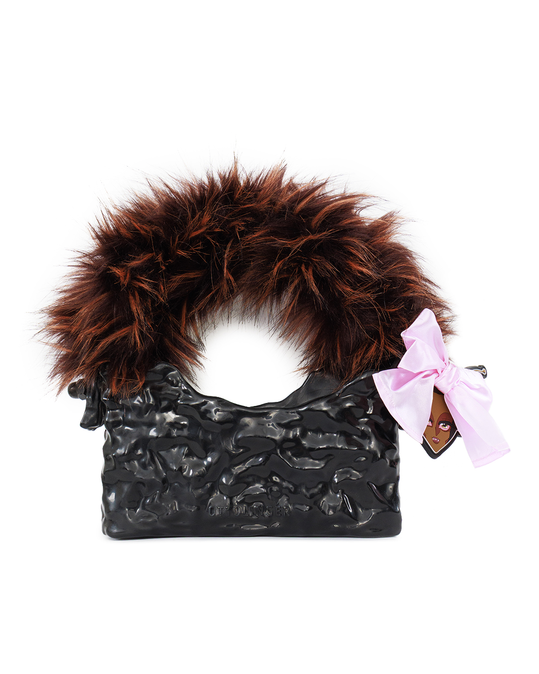 Эта сумка — воплощение эклектичного стиля и авангардной дерзости, создающая эффектный акцент в любом образе. Основной корпус выполнен из гладкого черного пластика с фактурной отделкой, что придаёт изделию уникальный и современный вид. Ручка из меха добавляет объём и драматичность, создавая интересный контраст с минималистичным корпусом. Этот элемент привносит в дизайн нотку гламура и театральности, подчеркивая индивидуальность и смелость обладательницы. Яркий декор в виде ярко-розового банта с прикрепленным декоративным элементом придаёт сумке игривый характер и добавляет женственности, становясь изящным завершающим штрихом. Каждая деталь выполнена с уделением максимального внимания качеству: отшлифованные края и прочные швы гарантируют долговечность и устойчивость к повседневному использованию. Это аксессуар, который сразу привлечет внимание и станет центральным элементом вашего гардероба, добавляя изюминку даже самому нейтральному аутфиту.