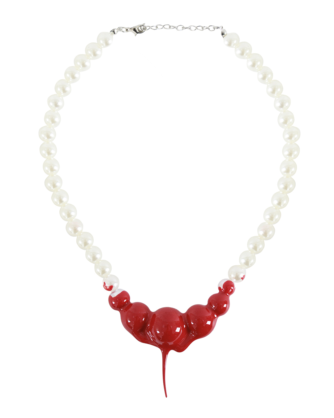 Это ожерелье — удивительное сочетание классики и авангарда, представляющее яркий акцент в мире аксессуаров. Изысканные жемчужные бусины плавно обрамляют шею, создавая изящный и утонченный силуэт, который подчёркивает элегантность и изысканность. Центральный элемент — скульптурный мотив насыщенного красного цвета, придающий украшению современный и дерзкий характер. Этот креативный акцент добавляет динамики и создает эффект неожиданности, превращая классическое ожерелье в произведение искусства. Отделка выполнена с высоким вниманием к деталям: гладкая поверхность жемчуга и тщательно обработанный центральный элемент обеспечивают тактильное удовольствие и визуальную притягательность. Застежка аккуратно интегрирована в дизайн и позволяет регулировать длину ожерелья для идеальной посадки. Это украшение станет центральным элементом вашего образа, выделяя вас из толпы и подчёркивая вашу индивидуальность. Ожерелье легко комбинируется как с вечерними, так и с повседневными нарядами, делая каждый ваш выход особенным.