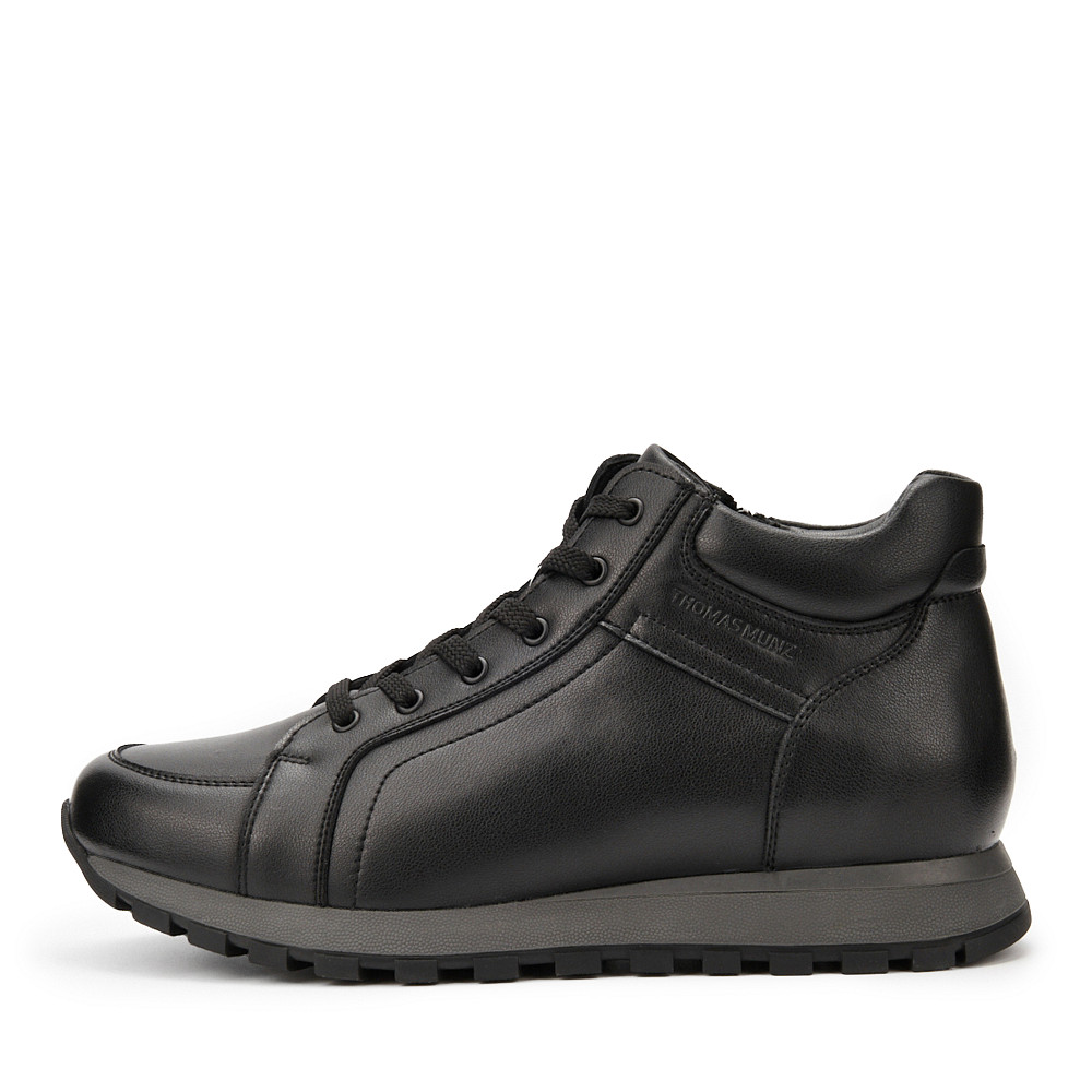 Кроссовки высокие мужские выполнены из кожи из спилка. Лаконичный силуэт и базовый черный цвет удачно сочетаются с завышенным верхом. Демисезонная модель мужских кроссовок с подкладкой и стелькой из ворсина. Рельефная подошва из резины отлично амортизирует.