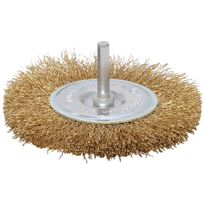 Щетка для дрели Cutop Profi 82-537, тип "Плоская", латунированная витая проволока 0.3 мм, 50 мм - предназначена для мягкой качественной зачистки различных металлических и деревянных поверхностей, снятия ржавчины, удаления лакокрасочных покрытий и других загрязнений.Преимущества Отлично подходит для обработки больших плоскостей Тип ''плоская'' оптимально подходит для обработки углов, пазов, изгибов и других труднодоступных участков Волнистая проволока обеспечивает деликатную зачистку поверхностей Латунное покрытие проволоки предотвращает коррозию