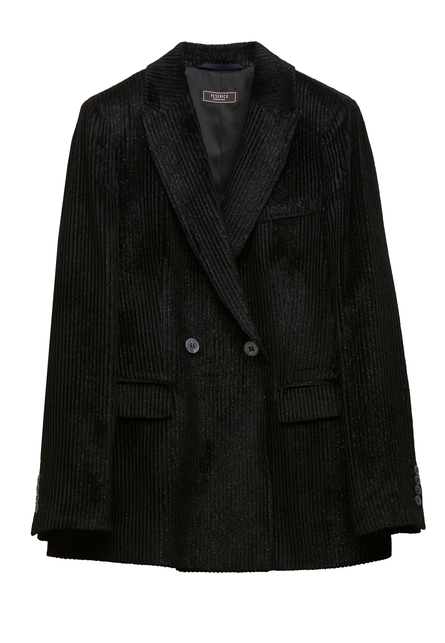 Вельветовый жакет прямого кроя от премиального бренда Peserico идеально сочетает в себе элегантность и современный стиль. Угольно-черный цвет придаёт модели изысканность, а двойной ряд пуговиц подчёркивает строгость линий, которые, в свою очередь, выгодно акцентируют женственность фигуры. Жакет выполнен из фактурной вискозы, что гарантирует высокое качество и комфорт в носке. Этот предмет гардероба станет отличным выбором для создания стильных образов, остающихся актуальными вне времени. Благодаря универсальному дизайну, жакет легко комбинируется с различными элементами гардероба, будь то классическая юбка-карандаш или стильные брюки. Идеально подходит для деловых встреч, вечерних мероприятий, а также для повседневной носки, добавляя ноту шика в любой ансамбль.