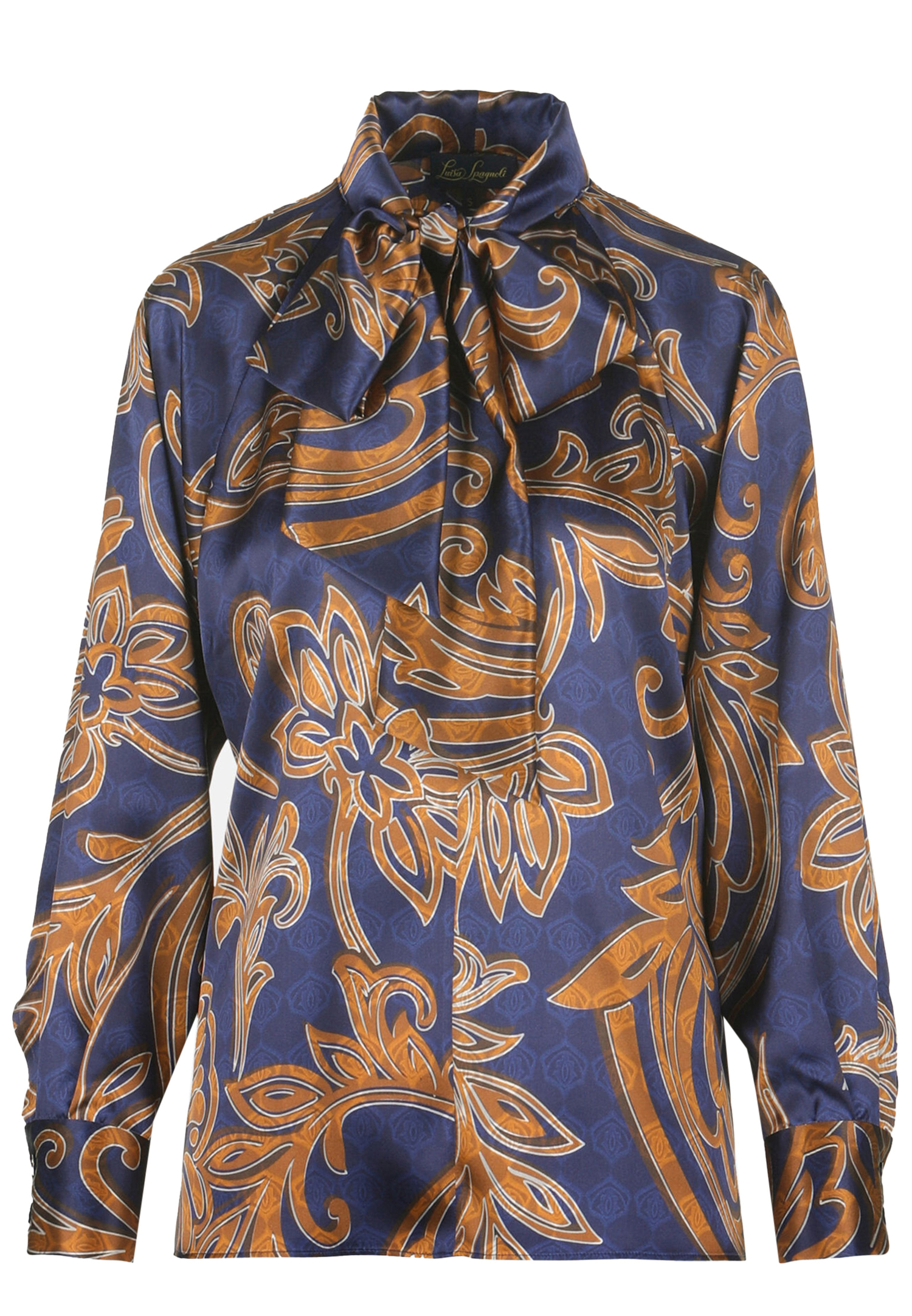 Шелковая блуза модели Liveri от Luisa Spagnoli изысканно воплощает женственность и утонченность. Воротник-аскот предоставляет уникальные возможности для создания стильного образа: его можно завязать в элегантный бант или оставить свободно свисать, добавляя нотку романтизма и изящности. Цветочный принт на темно-синем фоне придаёт блузе свежесть и изысканный шарм, делая её подходящей как для делового, так и для повседневного образа. Нежный шелк мягко облегает фигуру, обеспечивая комфорт и воздушность, а насыщенные цвета и аккуратный крой подчеркнут вашу индивидуальность и стиль, превращая любой образ в настоящее произведение модного искусства. Эта модель идеально согласуется с юбкой-карандаш, брюками или джинсами, добавляя утончённости и элегантности в ваш гардероб.