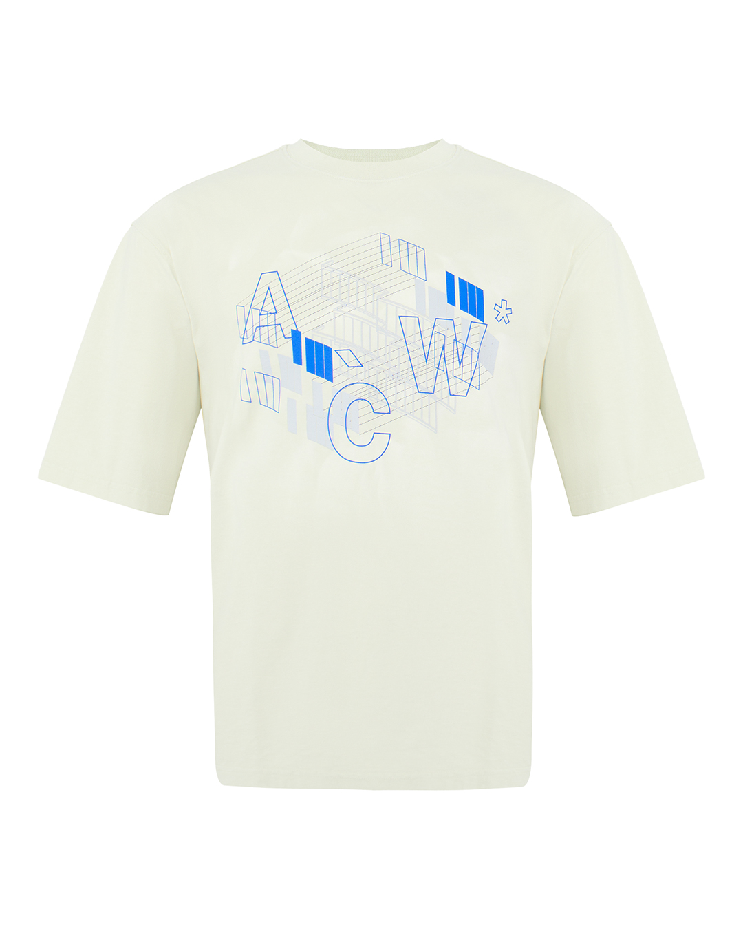 Эта футболка — воплощение прогрессивного дизайна и современного искусства. Изготовленная из премиального хлопка, она дарит комфорт и долговечность, гарантируя превосходное ощущение при носке. Нежный оттенок слоновой кости служит утончённым фоном для яркого графического принта, выполненного в стиле архитектурной геометрии. Сочетание линий и блоков синего цвета создаёт динамичный визуальный акцент, который подчёркивает индивидуальность и оригинальность вашего стиля. Классический круглый вырез и слегка расслабленный крой обеспечивают универсальность, делая футболку подходящей для разнообразных сочетаний. Тщательно обработанные швы и безупречная отделка подчеркивают внимание к деталям, обеспечивая изделию высокое качество исполнения. Эта футболка станет идеальным элементом для создания модного, уверенного образа, добавляя в ваш гардероб нотку современного искусства и креативности.
